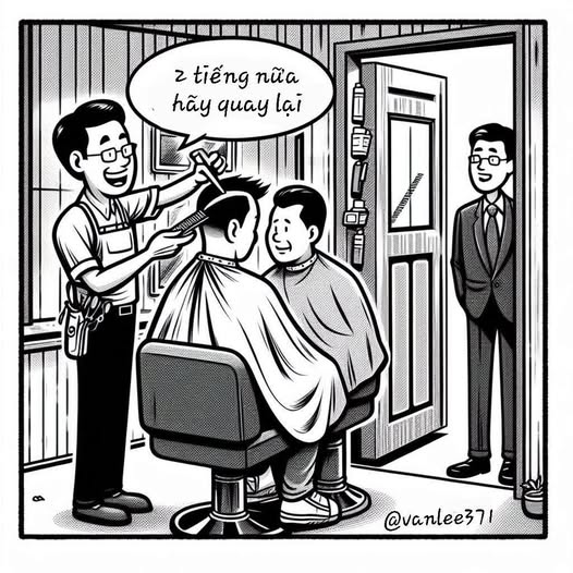 Thợ cắt tóc liếc nhìn hàng ghế chờ đang đầy ắp người, đáp: