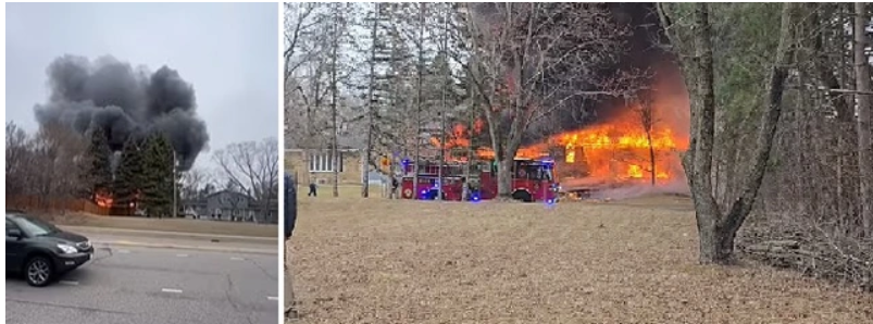 Các video trên mạng xã hội cho thấy ngọn lửa bao trùm ngôi nhà khi các thành viên của đội cứu hỏa địa phương cố gắng dập tắt đám cháy.
