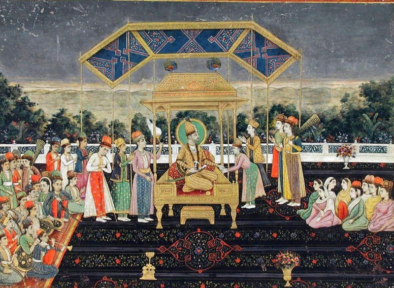 Hình ảnh vua Nader Shah đang ngồi trên Ngai vàng chim công