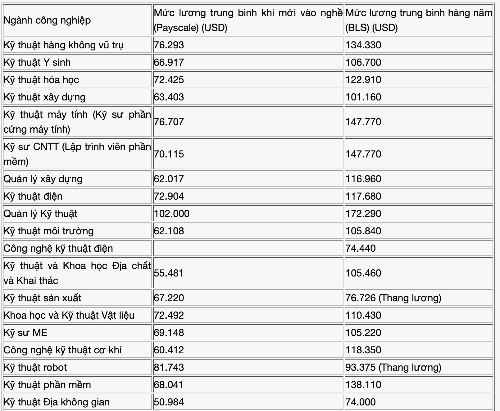 Lương kỹ sư ở Mỹ được trả rất cao, trung bình là 91.420 USD/nămLương kỹ sư ở Mỹ được trả rất cao, trung bình là 91.420 USD/năm