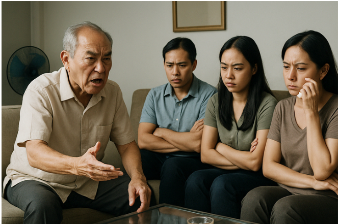 Cả đám giỗ đang vui bỗng im lặng đầy chết chóc khi hai người họ xuất hiện, tuyên bố về quê an hưởng tuổi già. Bố chồng tôi đòi bác cả chia phần đất do ông bà để lại, đòi hai đứa con đưa tiền xây nhà và tiền phụng dưỡng hàng tháng. Đối mặt với lời chỉ trích, mắng mỏ của họ hàng, ông ấy phớt lờ sự bạc tình bạc nghĩa, vô trách nhiệm của mình suốt những năm qua, chỉ nhăm nhăm đòi quyền lợi.