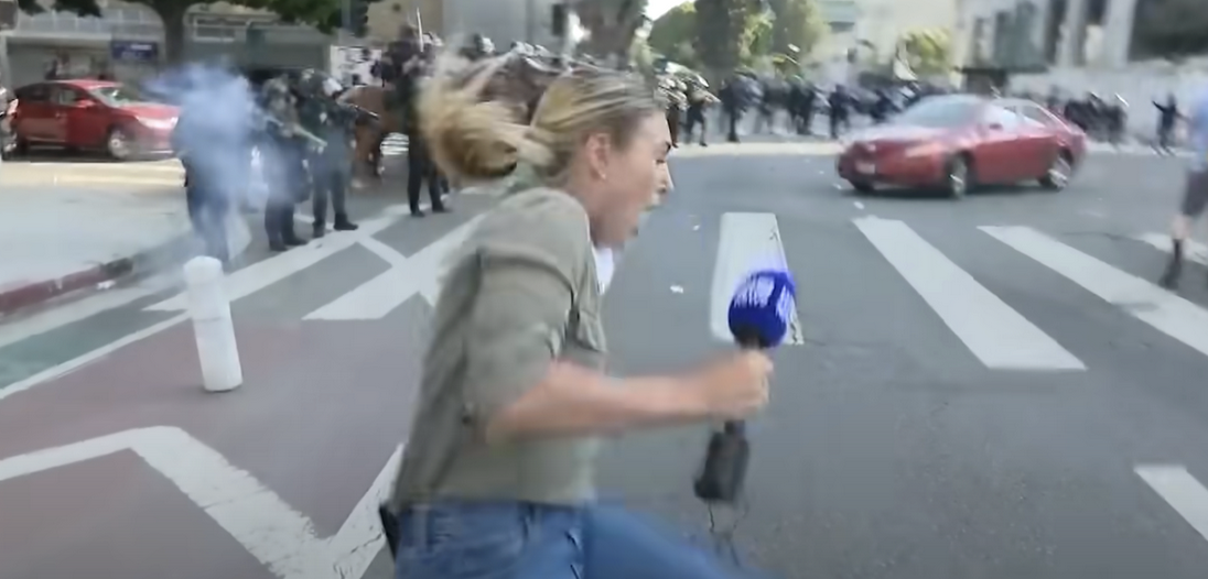 Một phóng viên của hãng tin 9News đã gặp sự cố sốc khi đang đưa tin về các cuộc biểu tình ở Los Angeles, Mỹ vào ngày 9/6.