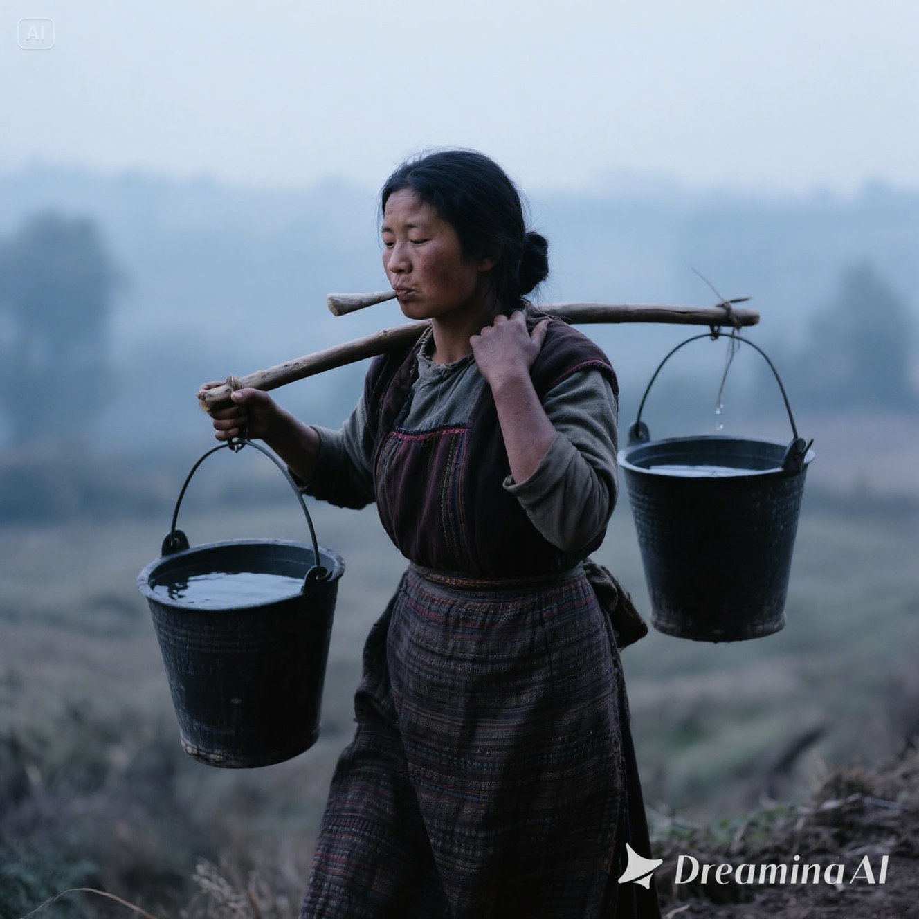 Ngày nọ, có một người đàn bà câm trong làng nghèo. Mỗi ngày, bà gánh hai thùng nước từ giếng làng về nhà. Nhưng một trong hai thùng bị nứt, nước rỉ ra trên đường.