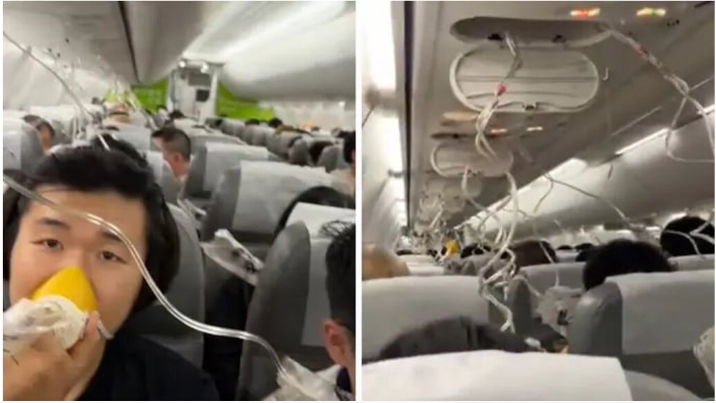Áp suất trong khoang giảm mạnh, khiến mặt nạ oxy tự động rơi xuống. Video từ chuyến bay cho thấy hành khách hoảng loạn, đeo mặt nạ oxy trong khi tiếp viên hàng không cố gắng trấn an và đưa hướng dẫn.