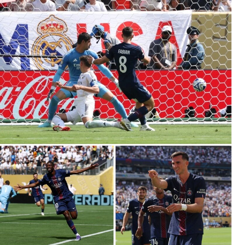 Trong một pha bóng tưởng chừng như không có gì trong vòng cấm ở phút thứ 3, Raul Asencio - cầu thủ được HLV Alonso lựa chọn để đá thay vị trí trung vệ Dean Huijsen bất ngờ để Dembele cướp được bóng. Dù chân sút số 10 của PSG không thể thắng được thủ thành Courtois nhưng Fabián Ruiz đã nhanh chóng có mặt, đá bồi dễ dàng mở tỷ số trận đấu. Chưa dừng lại ở đó, chỉ 3 phút sau, hàng thủ Real Madrid tiếp tục mắc sai lầm thứ 2, tạo điều kiện để Dembele nâng tỷ số lên thành 2-0. Lần này, cầu thủ khiến HLV Alonso choáng váng, phải ôm đầu ngoài đường biên là trung vệ Antonio Rudiger với pha chuyền lỗi một cách khó hiểu.