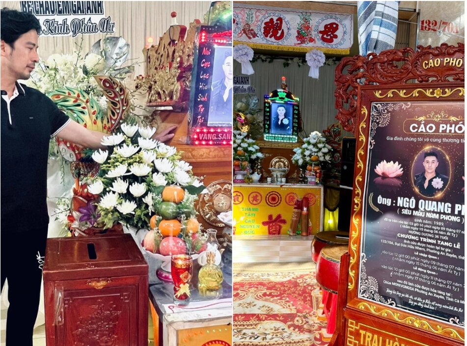 Diễn viên Đoàn Minh Tài, hoa hậu Phan Thị Mơ về Cà Mau tiễn Nam Phong trong tang lễ giản dị nhưng đầy tình cảm chân thành của bạn bè.