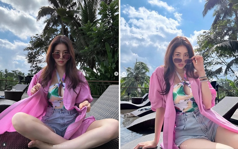 Trên trang cá nhân, Seo Dong Joo đăng tải dòng trạng thái ngắn: “Bali hôm nay trời nắng suốt cả ngày”, kèm theo loạt hình tạo dáng bên hồ bơi. Cô diện áo tắm halterneck khoét ngực sâu kết hợp short jeans và áo choàng hồng, khoe vóc dáng thon gọn, quyến rũ.