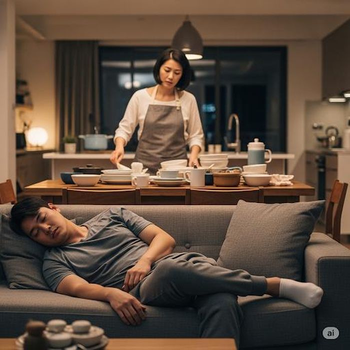 Có hôm Tùng về sớm hơn, ăn xong chưa đến mức muộn quá nhưng vẫn không dọn dẹp, không rửa bát ngay mà cứ quen để lại hôm sau cho chị Thắm rửa. Thành ra chị Thắm có những ngày phải dọn dẹp, rửa bát hai lần, một lần cho cả nhà, một lần cho Tùng.