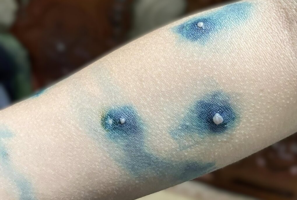 Các mụn nước ở tay người mắc thủy đậu. Ảnh: Diệu Thuần