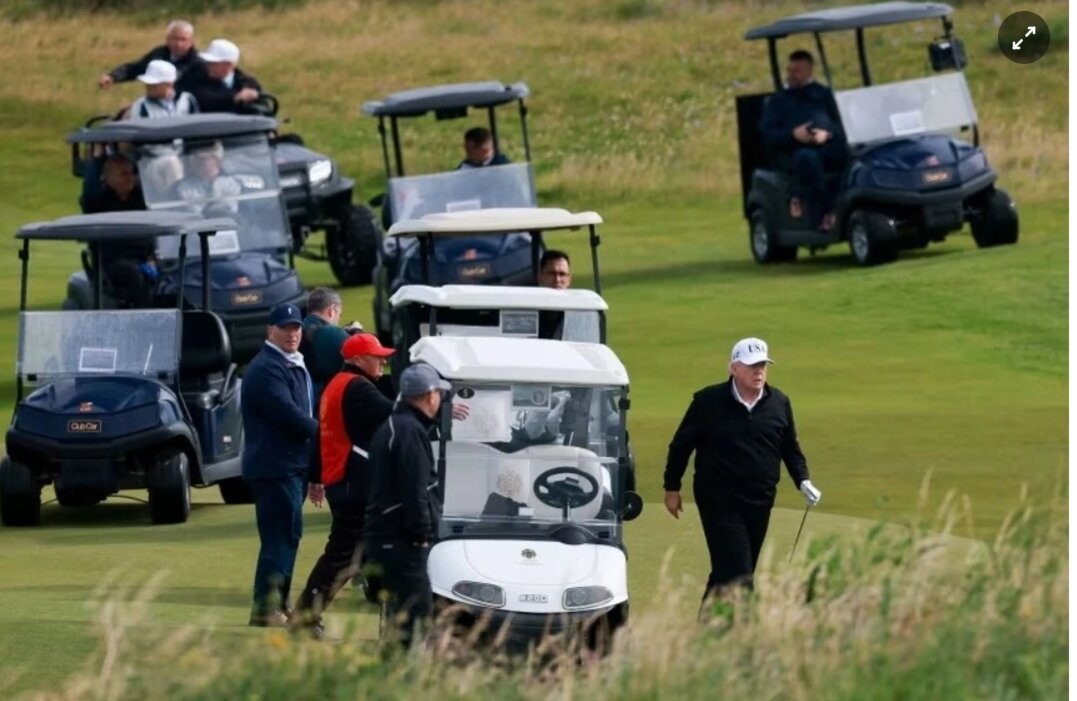 Ngày 25/7, ông Trump bắt đầu chuyến thăm bằng thời gian nghỉ ngơi tại khu nghỉ dưỡng Trump Turnberry, trước khi di chuyển đến sân Trump International Scotland ở vùng Aberdeenshire.