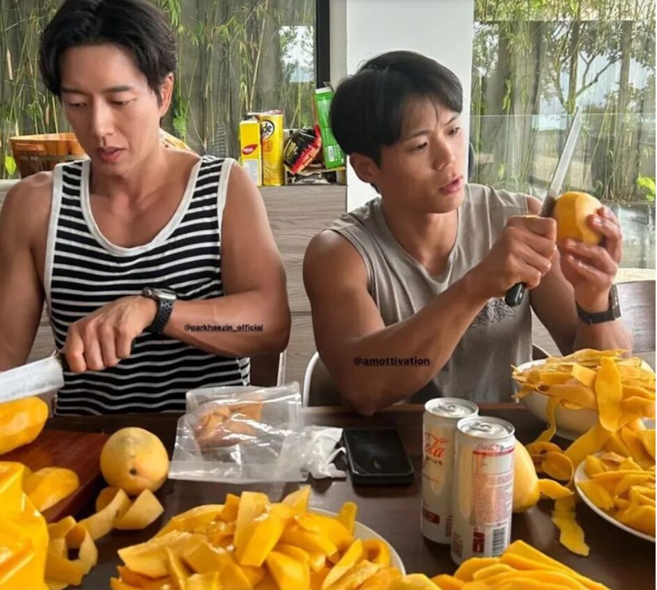 Diễn viên Park Hae Jin cùng các bạn mua hơn 20kg xoài khi tới Nha Trang. Ảnh: Instagram nhân vật