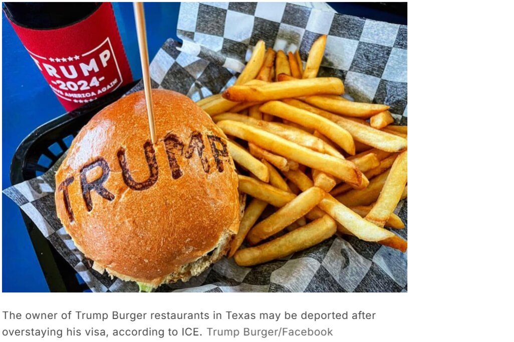 Ronald Beaini, một công dân Lebanon sở hữu một số địa điểm Trump Burger ở khu vực Houston, đã ở lại quá hạn thị thực và đang trong quá trình làm thủ tục nhập cư, ICE cho biết với KHOU tại Houston.