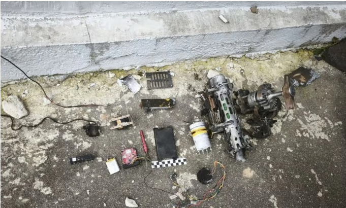 Các bộ phận được cho là của UAV tấn công nhà máy điện hạt nhân Smolensk ngày 17/8. Ảnh: RIA Novosti