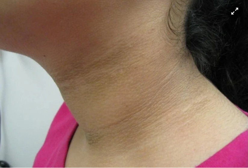 Vùng da bị sạm ở cổ, hay còn gọi là gai đen) có thể là dấu hiệu của bệnh tiểu đường. Ảnh: Pediatric.