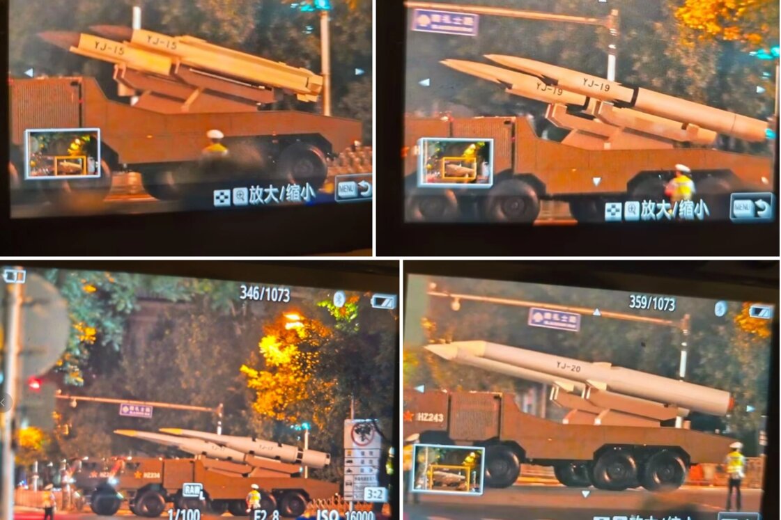 Trong số các loại vũ khí mới được ghi nhận, 4 mẫu tên lửa mang định danh YJ-15, YJ-17, YJ-19 và YJ-20 đã gây ấn tượng mạnh. Hiện vẫn chưa rõ chính xác mục tiêu tác chiến cũng như phương thức phóng của chúng, song theo truyền thống, tiền tố “YJ” thường được Trung Quốc gán cho các dòng tên lửa hành trình chống hạm hoặc tấn công mặt đất có thể được phóng từ máy bay, tàu nổi, tàu ngầm hoặc bệ phóng mặt đất.