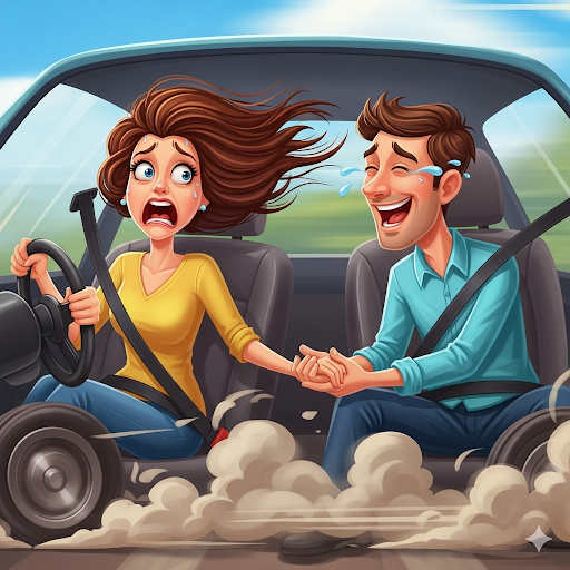 Cô vợ trợn mắt: – Giờ này tỏ tình hả? Xe không phanh kìa!