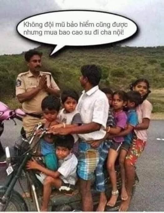 Chú công an thở dài, nhìn đội hình chen chúc trên xe, rồi nói một câu khiến cả xóm cười nghiêng ngả: – Không đội mũ bảo hiểm cũng được... nhưng mua bao cao su đi cha nội!