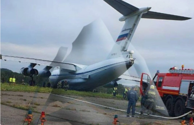 Tờ The Express mô tả chiếc máy bay vận tải khổng lồ Il-76 đã trượt khỏi đường băng ở vùng Krasnoyarsk (thuộc Siberia của Nga) và dừng lại trên một con dốc, cách đường băng khoảng 60 m.