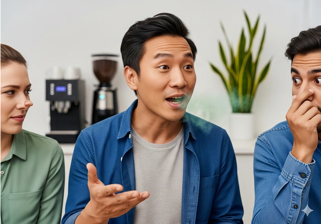 Những mùi như hành, tỏi, cà phê sau khi tiêu thụ vẫn lưu lại trong hệ tiêu hóa và máu, từ đó thoát ra qua hơi thở, dù đã vệ sinh răng miệng.