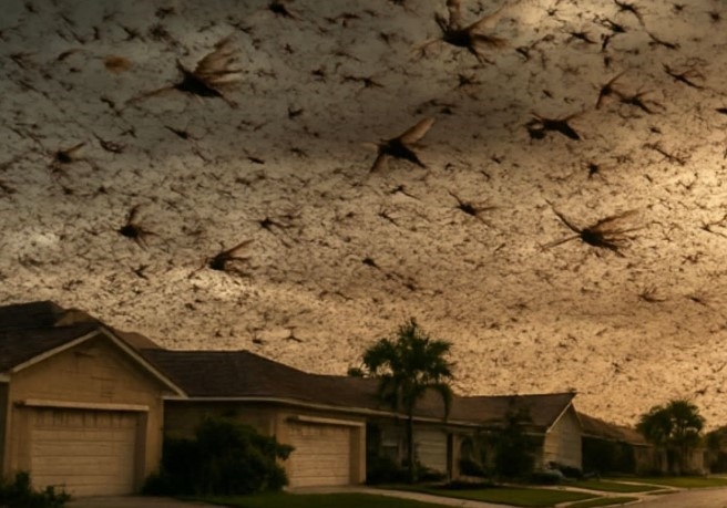 Theo như có hàng triệu con côn trùng bay lượn trên bầu trời, biến ánh sáng ban ngày thành một khung cảnh u ám, tận thế, khiến người dân ở một khu ngoại ô yên tĩnh tại Florida đã vô cùng kinh hãi và choáng váng vào tối qua. Tiếng vỗ cánh vang dội như sấm, xen lẫn âm thanh côn trùng va đập vào mái nhà, cây cối và cửa sổ làm cho cư dân nới này không khỏi hoảng sợ.