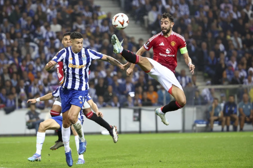 Bruno Fernandes (áo đỏ) trong trận Man Utd gặp Porto ở lượt đầu Europa League trên sân Dragao ở Porto, Bồ Đào Nha ngày 3/10/2024. Ảnh: AP