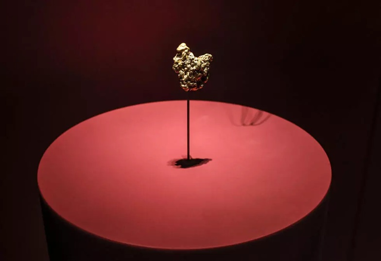 Một mẫu vật vàng được trưng bày tại Bảo tàng Lịch sử Tự nhiên Paris. Ảnh: AFP