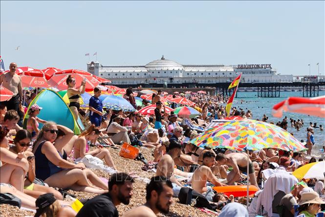 Người dân tắm biển tránh nóng tại Brighton, Anh.