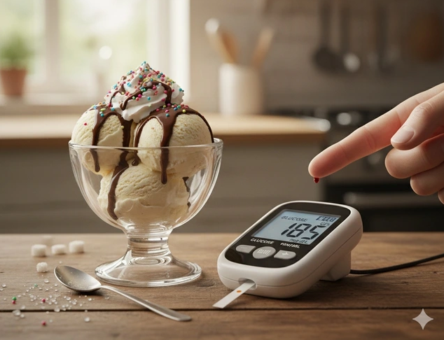Đó là lý do vì sao bệnh nhân bị tiểu đường cần theo dõi lượng carb nạp vào cơ thể, kể cả trong các món kem, vì nó là nhân tố quan trọng khi quản lý đường huyết.