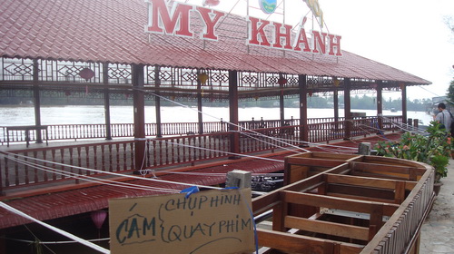 Sáng nay (9-1) biển cấm chụp h́nh, quay phim trên một miếng giấy cạc tông được viết bằng bút lông dầu đă xuất hiện tại nhà hàng nổi Mỹ Khánh