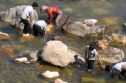 Từng nhóm dàn hàng ngang truy tìm cá dọc suối.