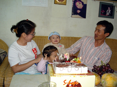LS Lê Thị Công Nhân (trái), Ngô Duy Quyền (phải) trong ngày sinh nhật một tuổi con của cô em gái LTCN. (H́nh: Gia đ́nh LTCN cung cấp)