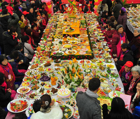 Người dân ở Vũ Hán, tỉnh Hồ Bắc, Trung Quốc hôm qua đã lập kỷ lục thế giới khi tổ chức tiệc đón chào Tết âm lịch, với hơn 8.000 món ăn khác nhau.