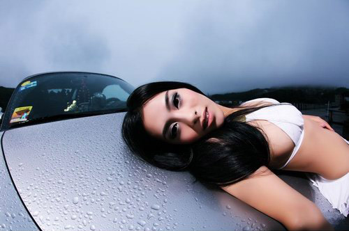 Người đẹp khoe tài uốn dẻo bên xe hai cửa