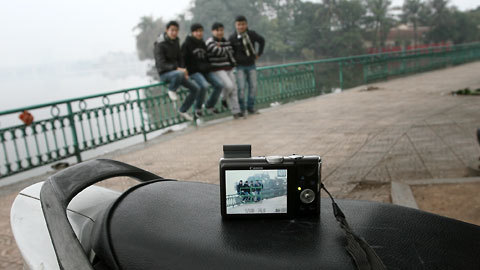 Nhóm bạn tự chụp ảnh kỷ niệm bên Hồ Tây trong sáng đầu tiên của năm Tân Mão.