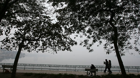 Đôi tình nhân dạo trong sương sớm Hồ Tây vào buổi sáng ý nghĩa của năm con mèo.