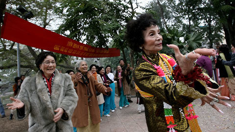 Năm nào câu lạc bộ Sức khỏe ngoài trời thuộc quận Hoàn Kiếm cũng tổ chức gặp mặt văn nghệ đầu năm bên Hồ Gươm.
