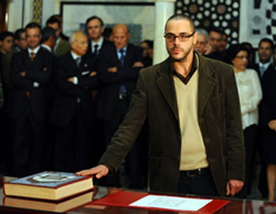 Bộ trưởng Ngoại giao Slim Amamou tuyên thệ nhậm chức với sự bất măn cao độ của dân chúng hôm 18/1/2011.