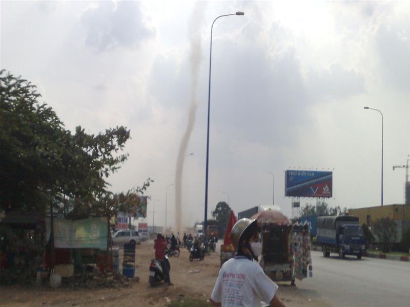 Vào lúc 15g ngày 17-2, gần ngã tư Thủ Đức - TP. HCM xuất hiện vòi rồng rất kỳ lạ có đường kính khoảng 1m, cao 20m-30m. Khi xuất hiện, nó đã làm bụi bay mù mịt và làm đổ bàn ghế của người dân đang bán hàng ở ven quốc lộ 1 A.