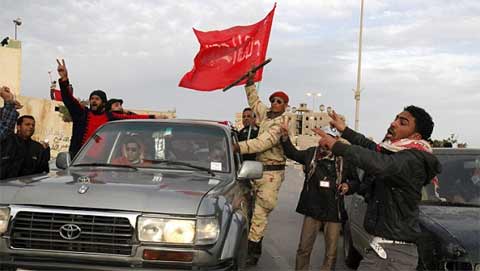 Tuy nhiên, làn sóng phản đối chính quyền ở Libya không v́ thế mà dịu bớt. Người biểu t́nh với sự hỗ trợ của hàng chục đơn vị quân đội đào ngũ tuyên bố giành quyền kiểm soát ở phía đông đất nước. C̣n ở phía tây, các nhân chứng nói rằng quân đội đang giao tranh với lực lượng trung thành với Gaddafi.