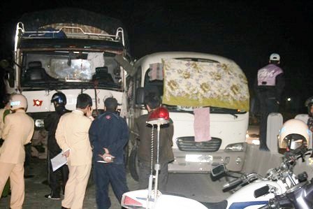 Đang chạy với tốc độ cao, do không quan sát phía bên phải đường, chiếc xe tải 3,5 tấn bất ngờ quệt vào xe 1,5 tấn đậu bên đường và tiếp tục va chạm với các xe tải khác khiến hai người chết tại chỗ.