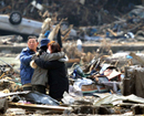 Người dân động viên nhau trên đống đổ nát tại quận Miyagi