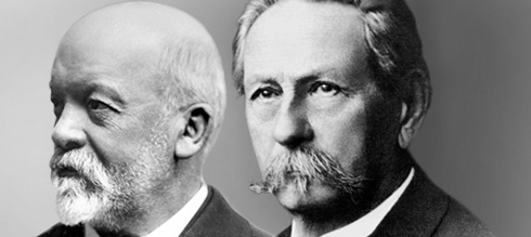 Gottlieb Daimler (trái) và Karl Benz, những người sáng tạo ra xe hơi. |