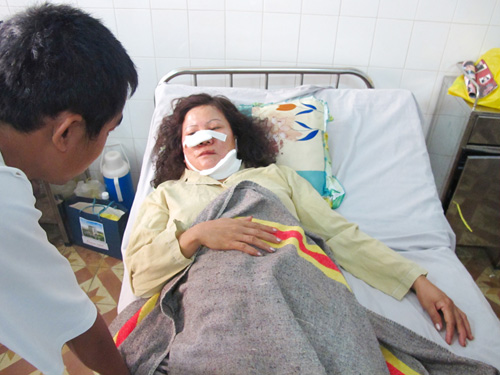 “Khi tôi hét lên cầu cứu thì kẻ trộm bịt miệng tôi lại. Do máu từ trên mặt chảy xuống miệng làm trơn nên kẻ trộm không bịt miệng tôi được nữa. Tôi vừa nắm chặt tay cầm dao của kẻ trộm, vừa xin tha mạng. Một lúc sau tôi té xỉu”, chị Hoa kể lại.