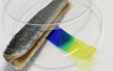 Tấm màng cảm ứng chuyển màu từ vàng sang xanh khi thực phẩm bị hư hỏng. Ảnh: Discovery.