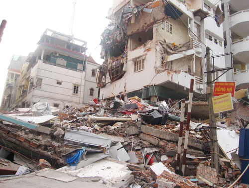 Đó là ngôi nhà 5 tầng số 14, ngơ 91, phố Nguyễn Chí Thanh, P.Láng Hạ; nhà số 48, phố Hoàng Ngọc Phách, Q.Đống Đa. Nhà 5 tầng số 366 đường Cầu Giấy, P.Dịch Vọng, Q.Cầu Giấy cũng bị nghiêng sang một bên, tách khỏi ngôi nhà bên cạnh; khu tập thể 5 tầng của Bộ Tư pháp (P.Cống Vị, Q.Ba Đ́nh) bị phát hiện lún nghiêng ra phía sau từ 30 - 35 cm.