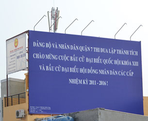 Pano chào mừng Bầu cử Đại biểu Quốc hội khóa XIII ở Q7 - TPHCM, ảnh chụp tháng 4-2011.