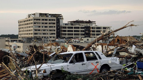 Cảnh đổ nát ở Joplin sau khi lốc xoáy đi qua. (Ảnh: Reuters)