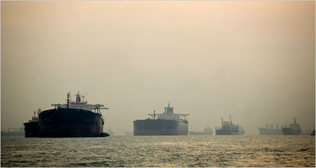 Tàu thuyền lưu thông trên eo biển Malacca, đoạn giữa Indonesia và Malaysia.