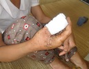 Chị Điệp bị thú lạ tấn công, cắn vào tay, phải khâu 10 mũi.