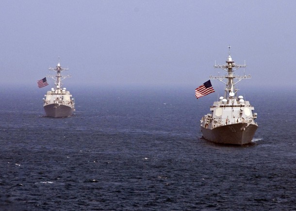 Mỹ vừa điều tàu khu trục trang bị tên lửa USS Chung-Hoon (phải) đến Tây Thái B́nh Dương